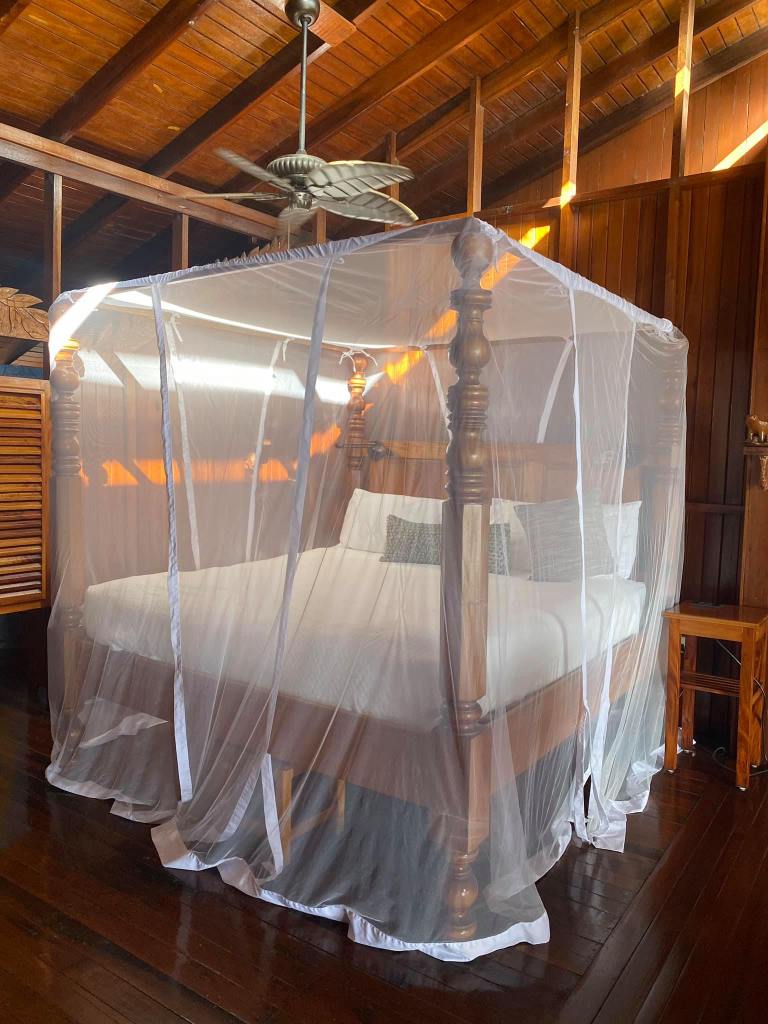 Villas and suites were intentionally built without a fourth wall, yet are designed to be sheltered, safe and completely private. The design affords spectacular sunset views and unobstructed star gazing at night. Mosquito nets are available in each suite