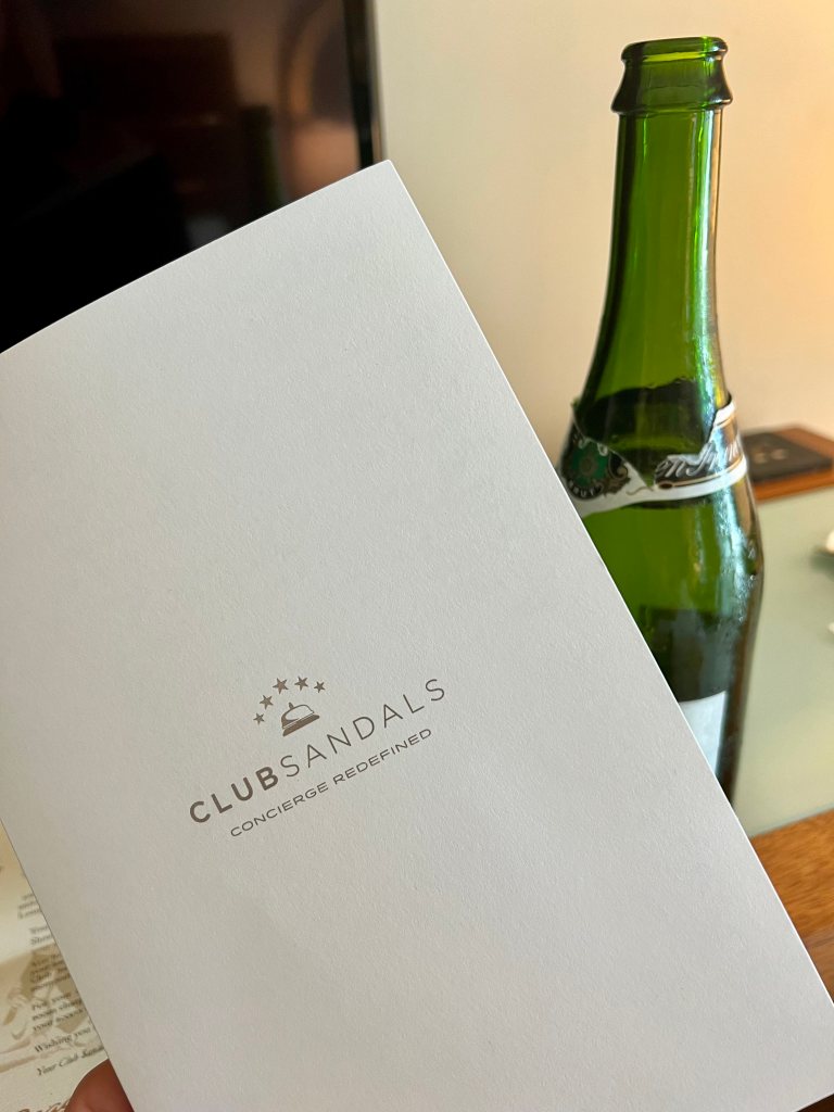 - Preferred Club Sandals Lounge check-in with chilled towel and champagne.