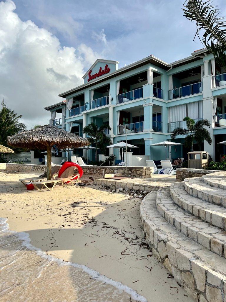 Sandals MB is broken out into four areas for guest rooms; the Oceanfront Village (more private beachfront rooms), the Beachfront Village (more lively beachfront rooms), the Caribbean Village (garden rooms as well as swim-up suites), and the Beachfront Villa Suites (beachfront butler suites, some with swim up)