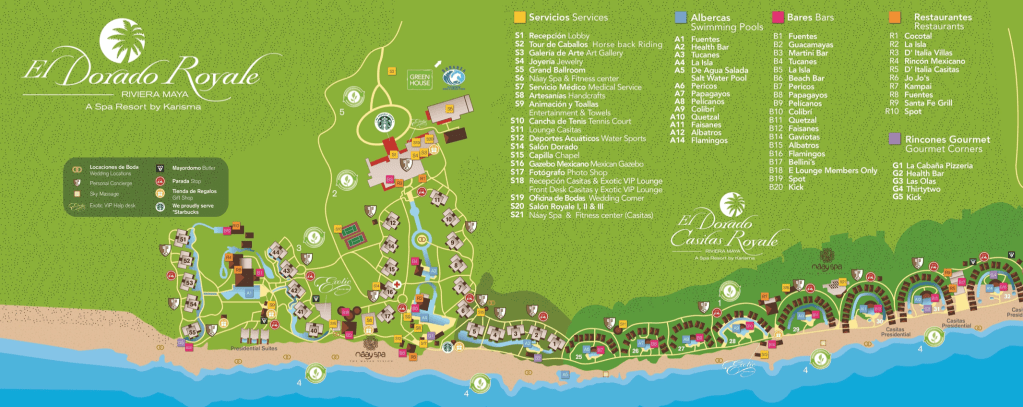 - Private swim up bars available in each casita block (see map for details)