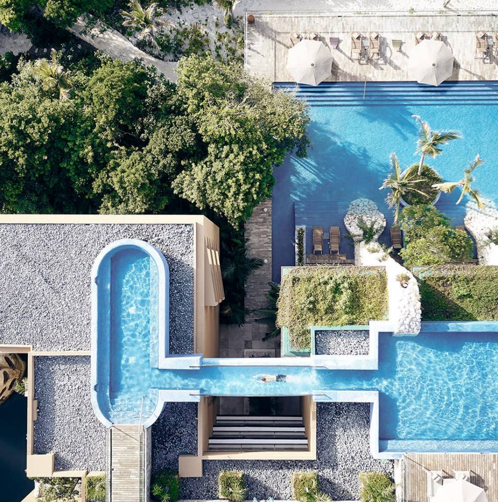 - Casa Espiral – is ideal to accommodate groups that attend to an event or that celebrate a wedding. View of Xpiral pyramid and diamond shaped infinity pools