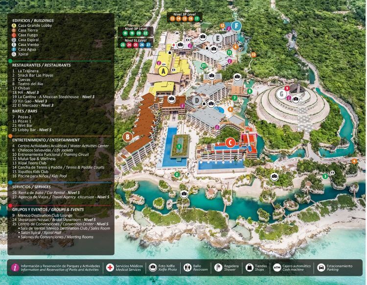 Hotel Xcaret is laid out in 5 elements; or Casas. Each has a different vibe and room categories.