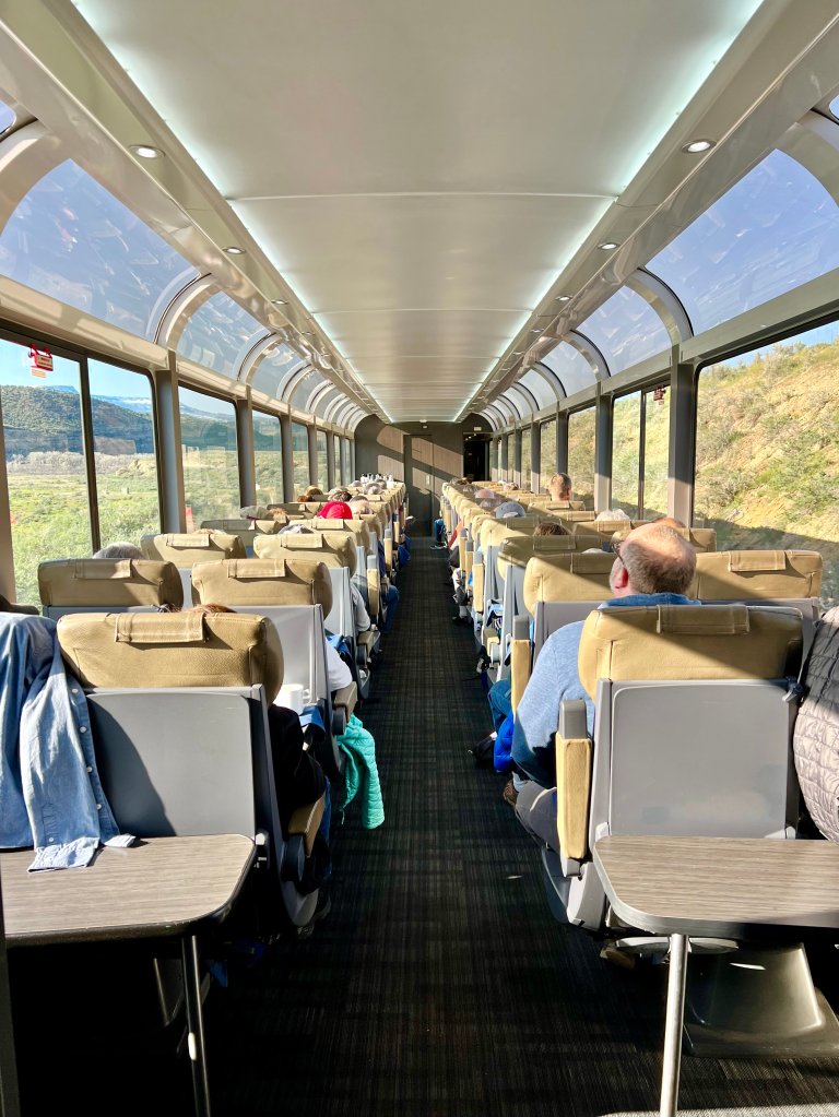 - The train travels only during the day and features oversized windows, so you do not miss a moment of the ever-changing landscapes